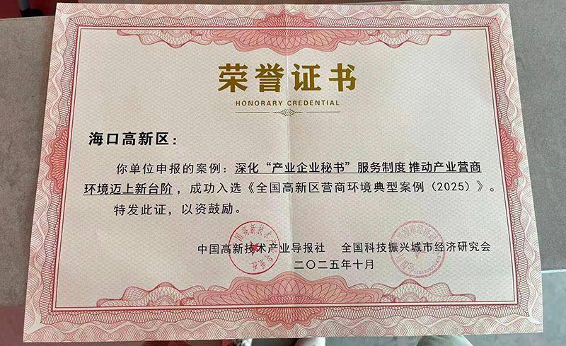 人民网海口10月31日电 (记者牛良玉)10月29日,第二十一届国家高新区发展战略研究年会暨2025国家高新区创新发展论坛在杭州举办,会上正式发布《全国高新区营商环境典型案例(2025)》。其中,海口国家高新区以打造生物医药产业营商环境“小切口”报送的《深化“产业企业秘书”服务制度推动产业营商环境迈上新台阶》案例成功入选,标志着园区在深化“放管服”改革、优化营商环境方面的创新实践获得了国家层面的高度认可,为全国高新区提供“自贸港经验”。